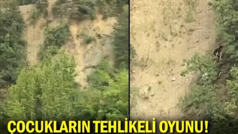 Olay İnegöl'ün kırsal Cerrah mahallesinde meydana geldi. 2 çocuk, ormanlık alana gezmeye gittiler. Çocuklar ormanlık alanda dik yamaca tırmanmaya başladılar. Tehlikeli anlar amatör kameraya yansıdı.