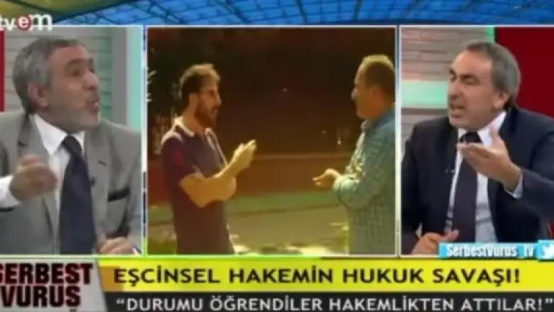 TVEM’de yayınlanan Serbest Vuruş programında, eşcinsel olduğu gerekçesiyle bir futbol hakeminin görevden alındığı iddiası, gergin anlar yaşanmasına neden oldu.