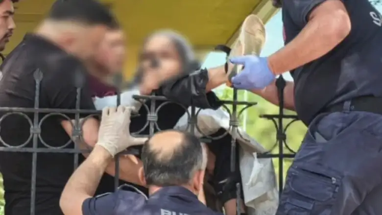İnegöl'de meydana gelen olayda bahçe duvarından atlarken korumalık demiri bacağına saplanan çocuk 112 ve itfaiye ekipleri ince kurtarıldı. Kurtarma anı saniye saniye kameraya yansıdı.