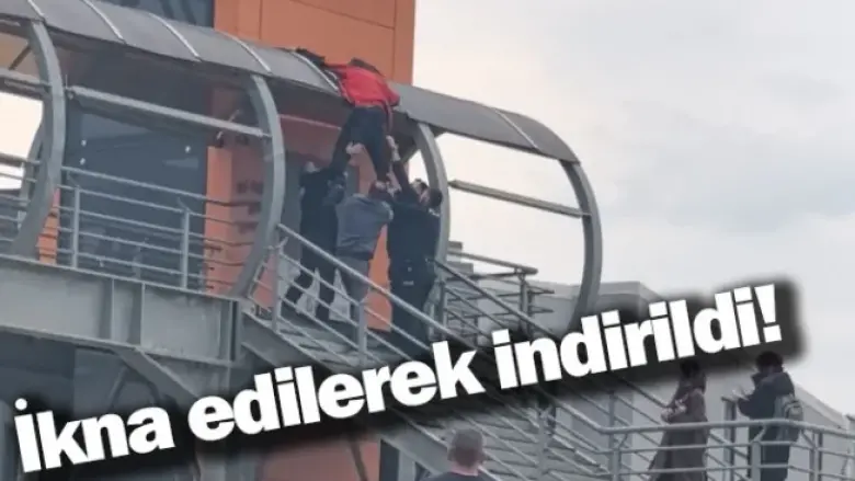 İkna çalışmalarını meraklı gözlerle izleyen öğrenciler, üst geçitten adamın indirilmesini sağlayan polis ekiplerini alkışladılar.