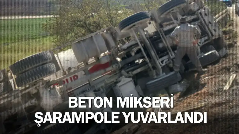 İnegöl'de beton mikseri şarampole yuvarlandı
