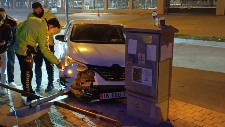 Edinilen bilgiye göre Süleymaniye Mahallesi İstiklal Caddesi üzerinde iddiaya göre seyir halinde olan Bülent U.(27) yönetimindeki 16 KBU 70 plakalı otomobili seyir halindeki bir araç sıkıştırdı. Direksiyon hakimiyeti kaybolan otomobil kaldırımın üzerindeki trafik levhalarına çarparak durabildi. Kaza sonucu otomobil sürücüsü hafif şekilde yaralandı. Trafik ekipleri ile çevredeki vatandaşlar tarafından ilk müdahalesi yapılan yaralı, haber verilmesi üzerine olay yerine gelen sağlık ekipleri tarafından hastaneye kaldırıldı.