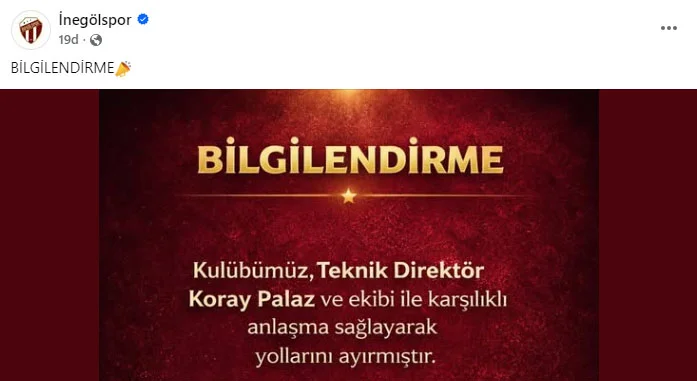 Kulüpten yapılan resmi açıklamada, Teknik Direktör Koray Palaz ve ekibiyle karşılıklı anlaşma sağlanarak yolların ayrıldığı duyuruldu.